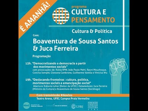 Portuguese Moving borders: political culture, social movements and social emancipation with Boaventura de Sousa Santos. 29, October 2015 Anfiteatro Praia Vermelha - Campus Praia Vermelha da UFRJ, Urca, Rio de Janeiro...